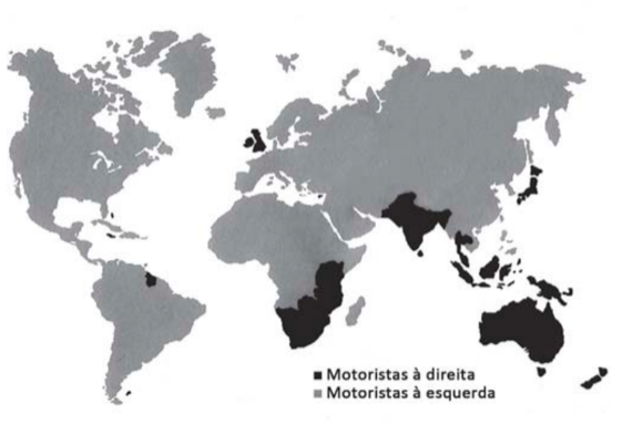 Lado ocupado pelo motorista em um automóvel Disponível em: http:irepairpal.com. Acesso em: 14 jan.2014 (adaptado). A interpretação da imagem demonstra que a distribuição de países onde …