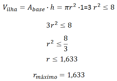 Num parque aquático existe uma piscina infantil na forma de um cilindro circular reto, de 1 m de profundidade e volume igual a 12 m³, cuja base tem raio R e centro O. Deseja-se construir uma ilha de …