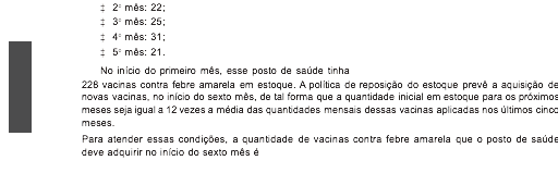 Um posto de saúde registrou a quantidade de vacinas aplicadas contra febre amarela nos últimos cinco meses: 1o mês: 21; 2o mês: 22; 3o mês: 25; 4o mês: 31; 5o mês: …