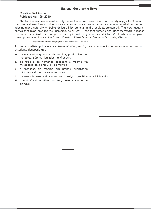 Continue Reading sobreENEM 2013 Q92 Our bodies produce a small steady amount of natural morphine →