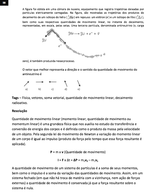 A figura foi obtida em uma câmara de nuvens, equipamento que registra trajetórias deixadas por partículas eletricamente carregadas. Na figura, são mostradas as trajetórias dos produtos do decaimento …