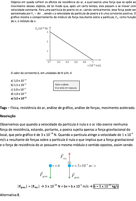 Fuvest 2017 Objetos em queda sofrem os efeitos da resistência do ar, a qual exerce
