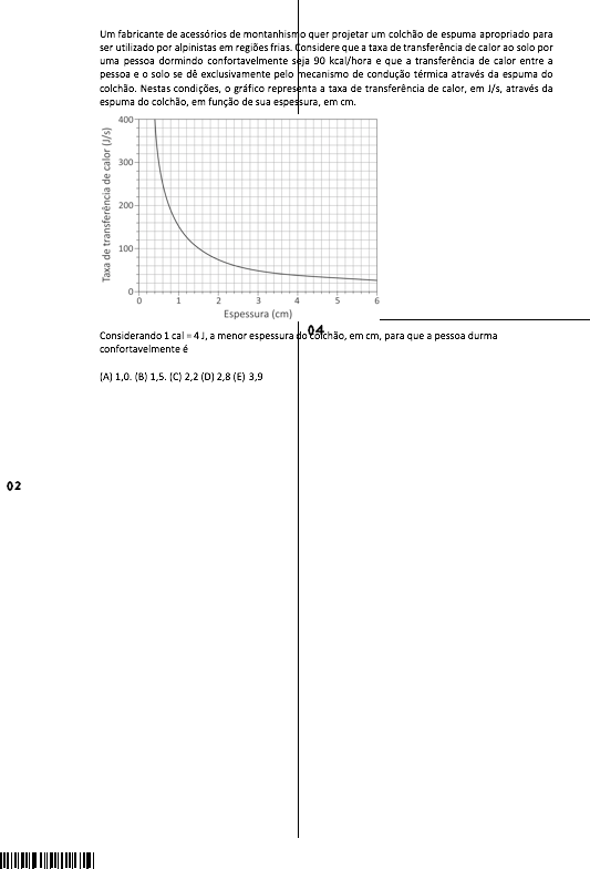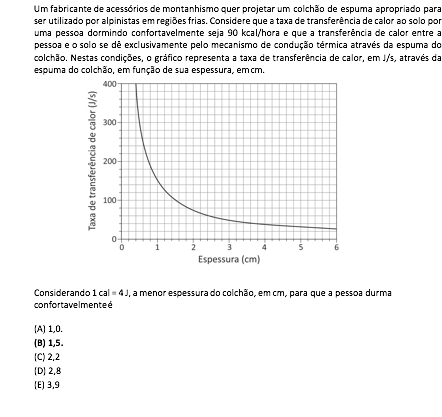 Um fabricante de acessórios de montanhismo quer projetar um colchão de espuma apropriado para ser utilizado por alpinistas em regiões frias. Considere que a taxa de transferência de calor ao solo por …