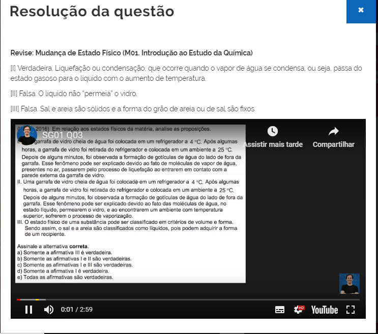 Em muitas questões, você poderá assistir a uma resolução em vídeo ministrada pelo próprio professor.