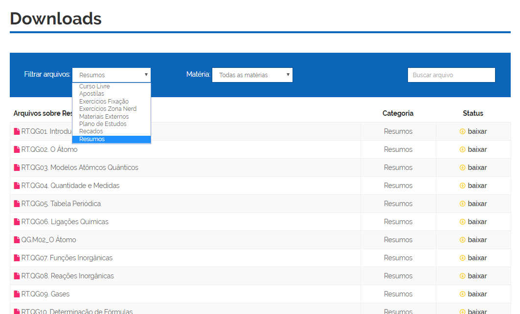 Você pode baixar apostilas de todos os assuntos, exercícios de fixação, exercícios da zona nerd (exercícios de assuntos mais específicos e avançados), planos de estudos (tem mais 50 planos) e resumos das matérias. É um acervo bem grande de material que você pode escolher seguir, tudo dentro da plataforma, sem que você precise sair procurando desesperadamente pela internet.