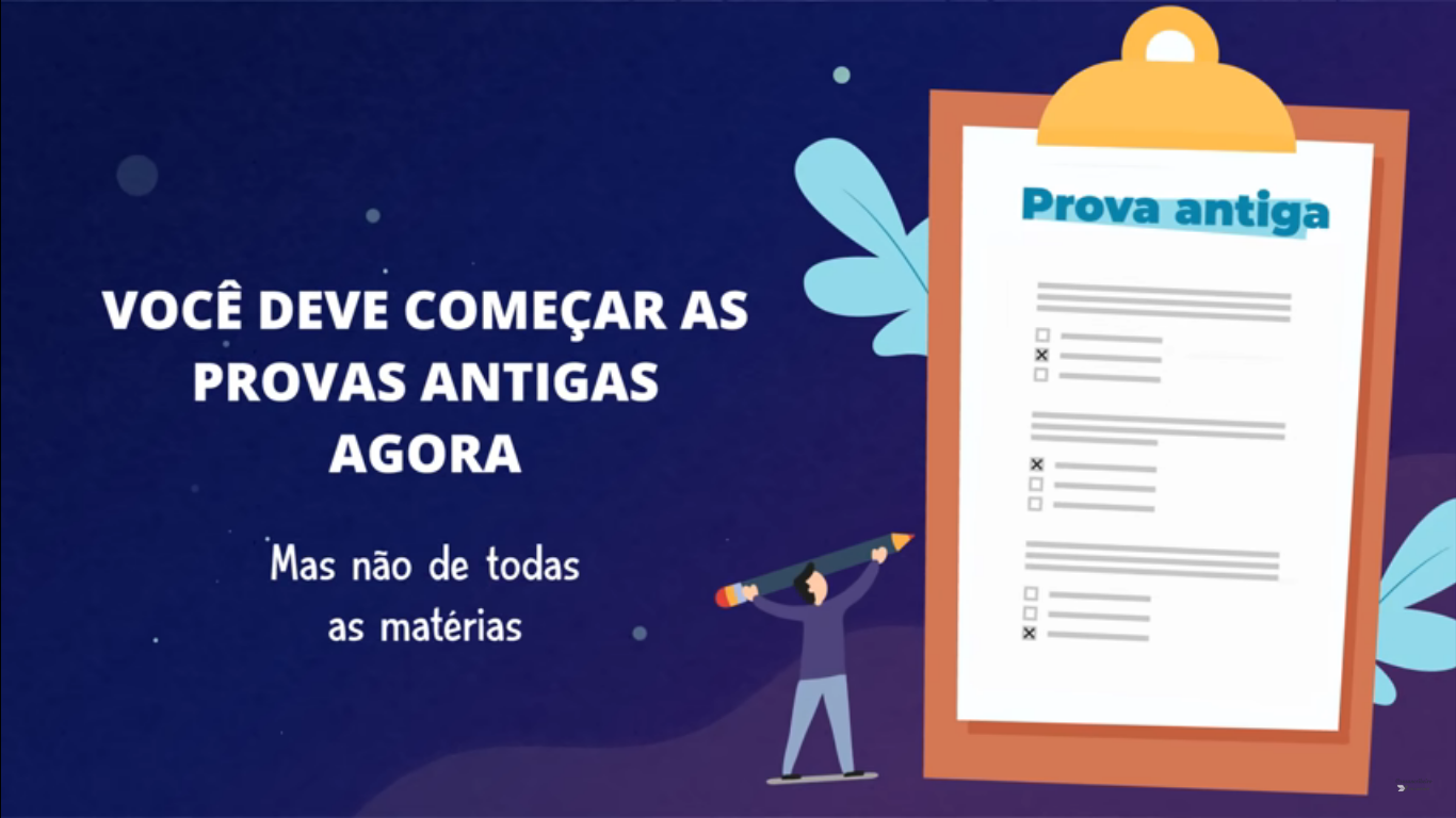 Essa é uma pergunta muito boa e pode ser a diferença entre passar ou não! A verdade é que você já deve começar as provas antigas agora, mas não de todas as matérias.