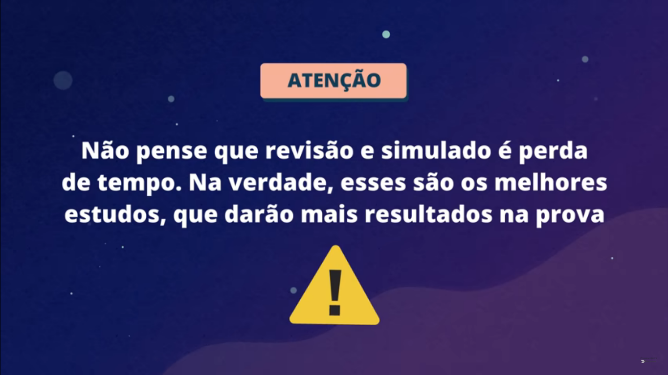 Ela vai ser um investimento que vai dar um retorno de questões na hora da prova! E é bem isso mesmo, então não pense que revisão, que simulado é perda de tempo, na verdade é um dos melhores tempos do seu estudo, que vai dar o maior resultado, que vai ser chegar na prova e fazer as questões; e durante a prova ter aquela sensação de:
