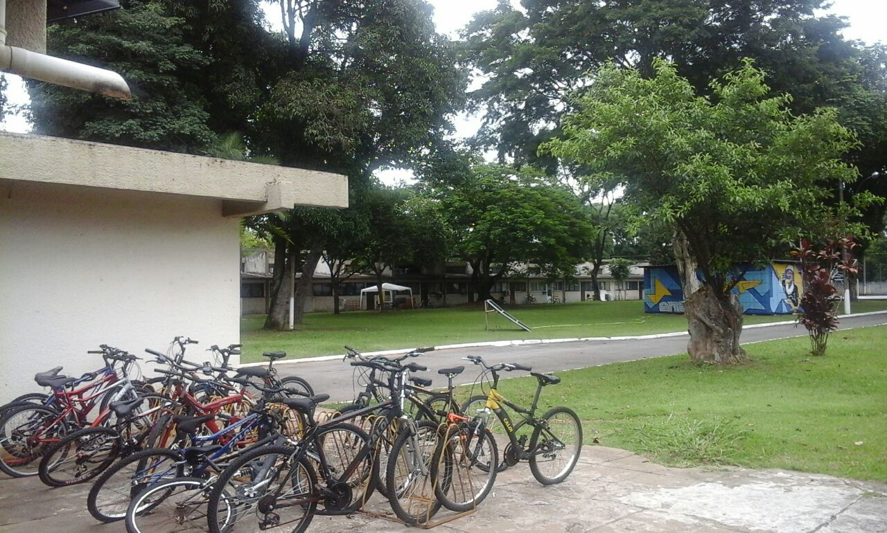 O CTA é ótimo para andar de bicicleta, muitos alunos tem uma. Um dos bicicletários do H8: