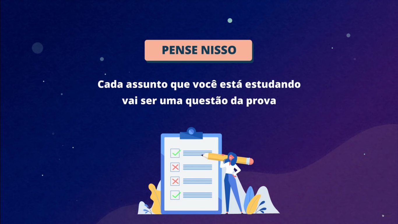 Então vai com a ideia de que cada assunto que você tá vendo vai te levar onde você quer chegar, vai te dar uma questão no dia da prova. Então sem desespero de acabar logo, passar logo… Estude com qualidade, aprendendo muito bem o que você tá vendo hoje, porque é isso que vai te fazer passar de primeira, ou passar em um ano de cursinho, vai ser ver muito bem os assuntos hoje já se aprofundar e ficar muito bom.