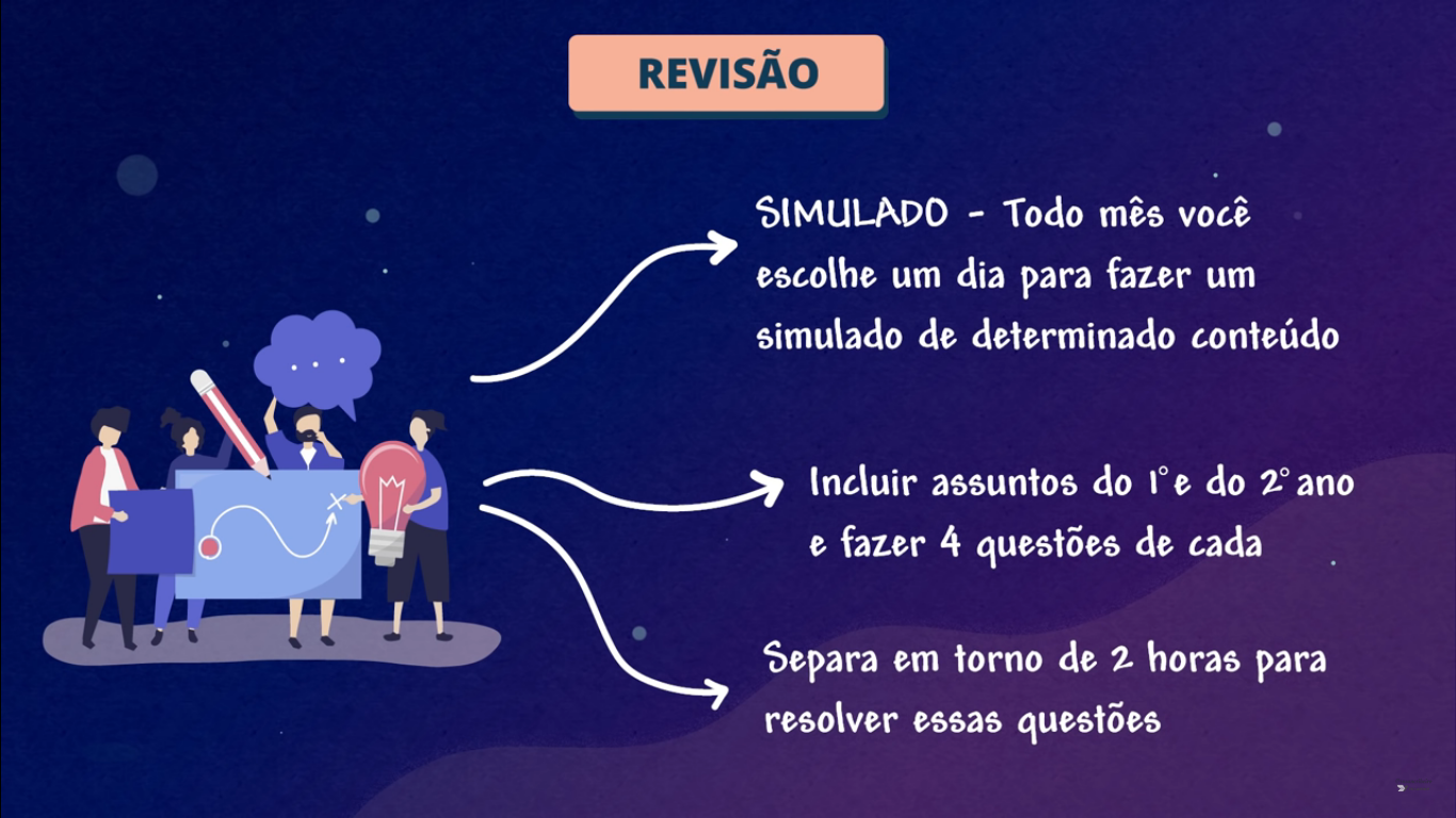 É importantíssimo que você faça revisões, porque se não o que vai acontecer é que você vai ver um assunto no primeiro ano e depois vai passar um ano sem ver, pelo menos, vai voltar a ver no terceiro ano e vai ser como se nunca tivesse visto; então vai ter um esforço tão grande para aprender aquele assunto, para revisar, que vai ser quase equivalente a aprender de novo do zero.