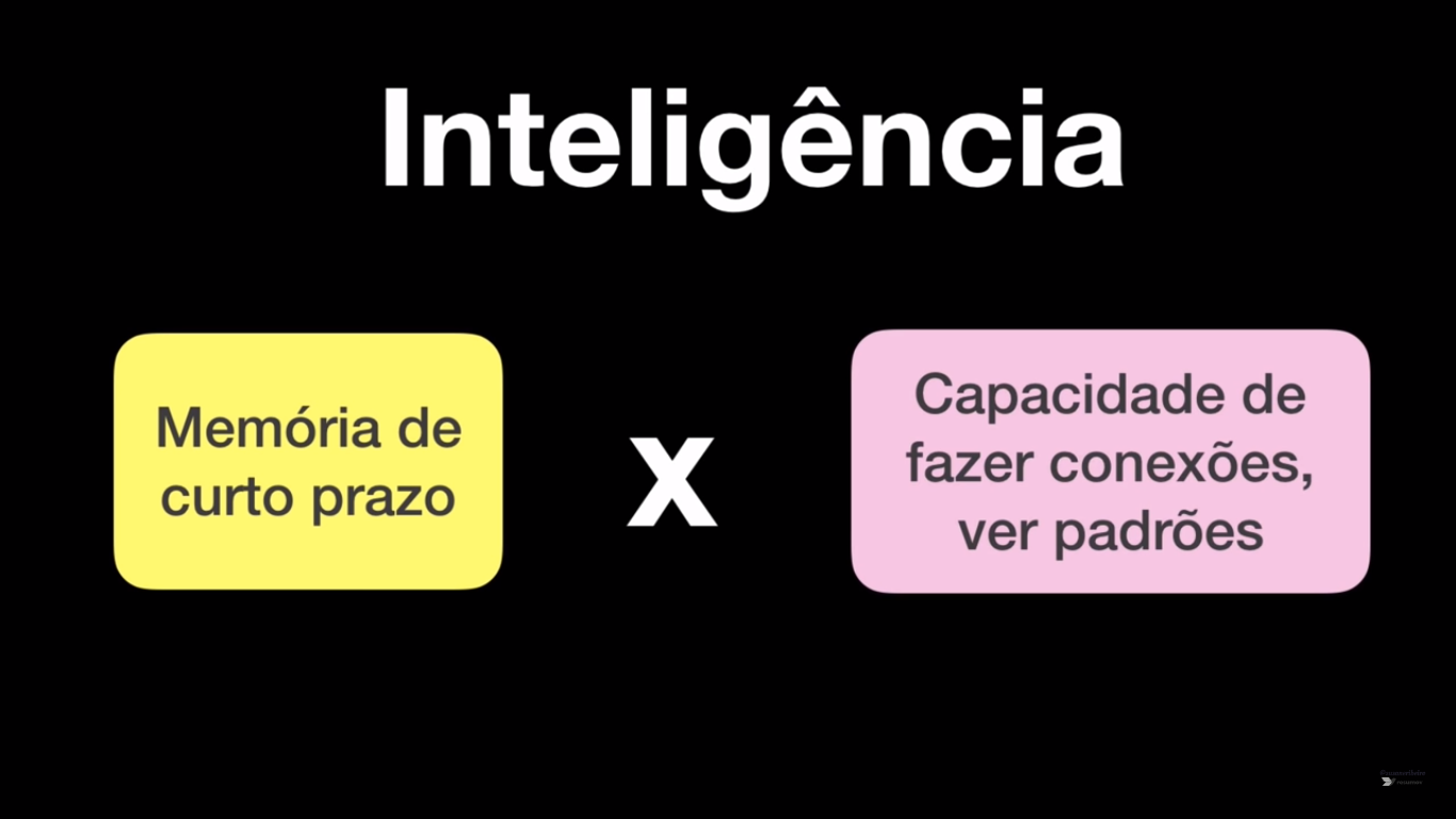 A gente pode pensar na inteligência como como uma multiplicação – claro, isso aqui foi liberdade criativa minha rs – do que você consegue reter dessas informações na memória de curto prazo, com a sua capacidade de raciocínio, que vai ser ver padrões, fazer inferências, conectar ideias, basicamente.