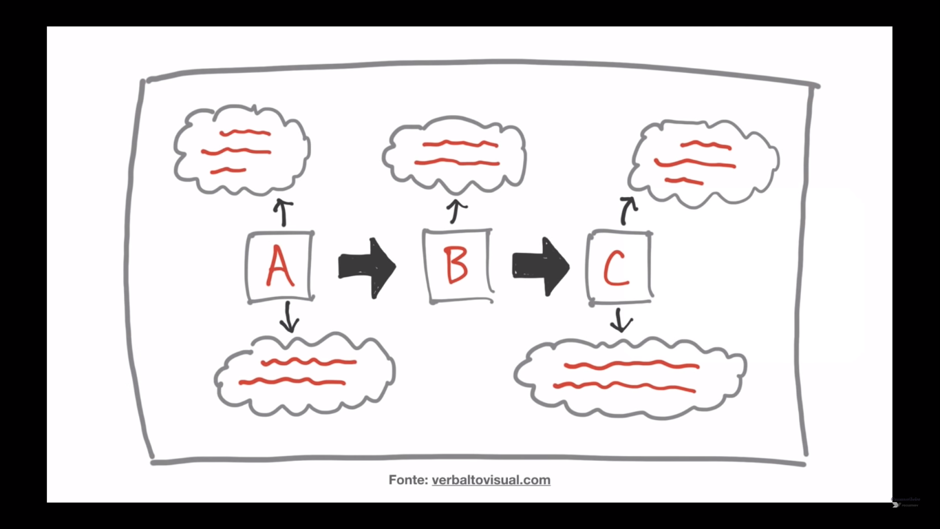 Dentro disso, uma coisa que é muito útil é fazer setas. Logo, você coloca as informações e faz setas de uma informação pra outra, ou faz um mapa mental.