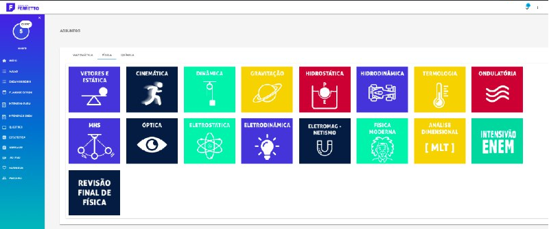 Além das aulas de matemática, a plataforma do professor Ferreto possui as aulas completas e física. Desde cinemática até eletrodinâmica e física moderna.