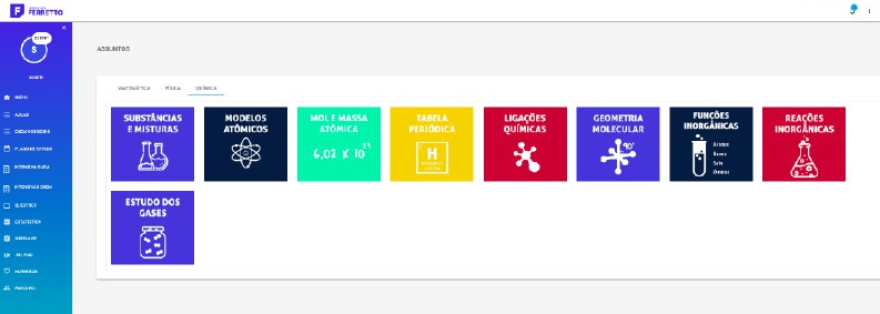 E a novidade desse ano na plataforma foi a entrada de química. As aulas ficarão completas ainda em 2020. Até o momento, estão todas as aulas dos assuntos correspondentes ao primeiro ano do ensino médio.