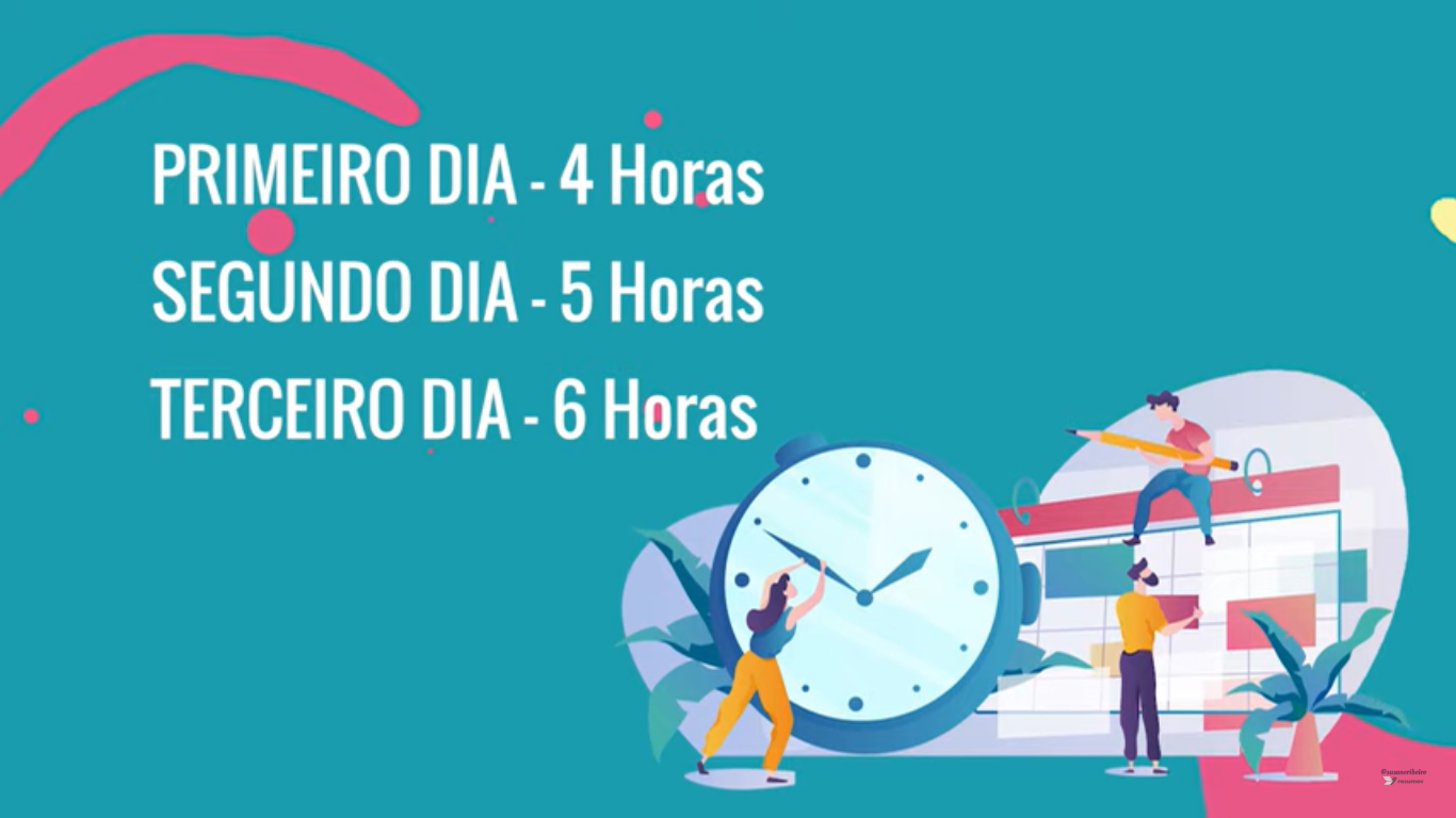 Pense em criar um planejamento crescente. Portanto, no primeiro dia você estuda, por exemplo, 4 horas. No segundo, 5 horas, e vai aumentando. Pra não pegar no tranco de um dia pro outro.