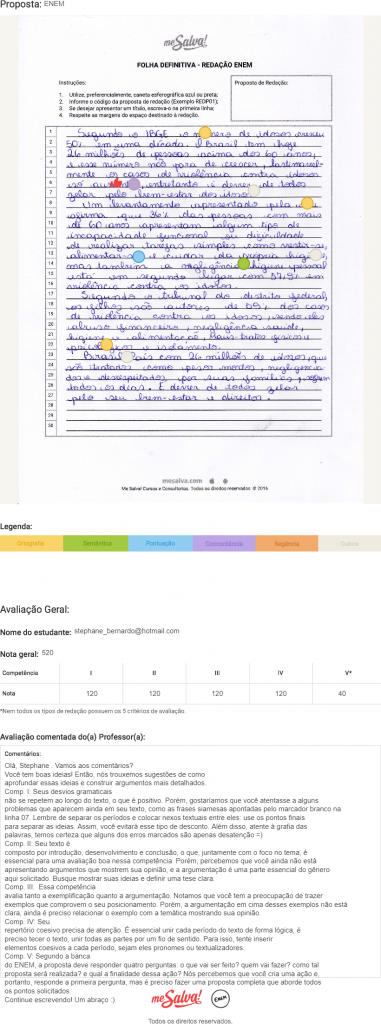 Abaixo um exemplo de correção de redação.