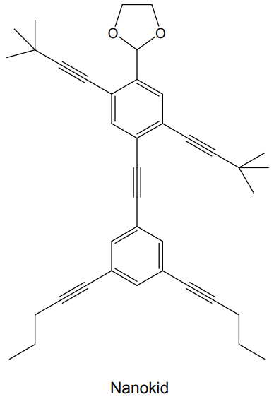 As moléculas de nanoputians lembram figuras humanas e foram criadas para estimular o interesse de jovens na compreensão da linguagem expressa em fórmulas estruturais, muito usadas em química orgânica. Um exemplo é o Nano Kid, representado na figura: