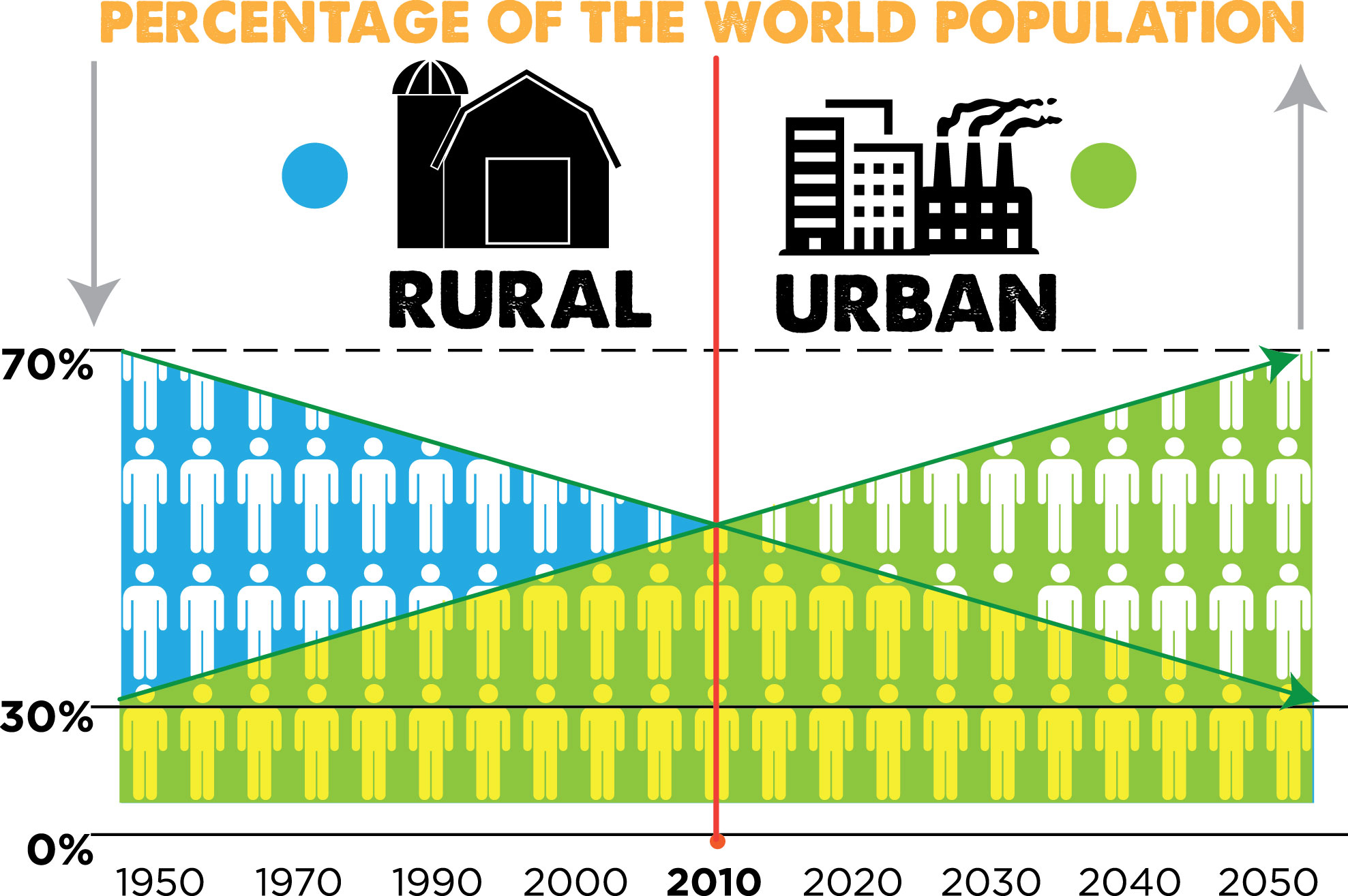 As cidades foram crescendo, no fenômeno conhecido como urbanização ao mesmo tempo que foi ocorrendo o êxodo rural principalmente a partir de 1950 com a mecanização da agricultura.
