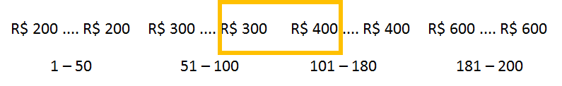 B | R$ 300,00 | 25% x 200 = 0,25 x 200 = 50 |