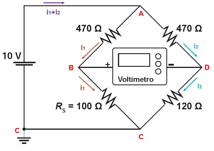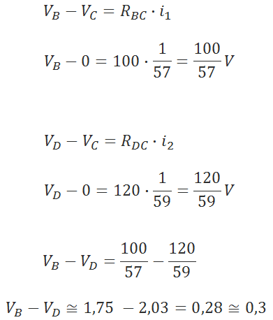 Em seguida, precisamos comparar a ddp entre os pontos B e D considerando que o ponto D será aterrado.