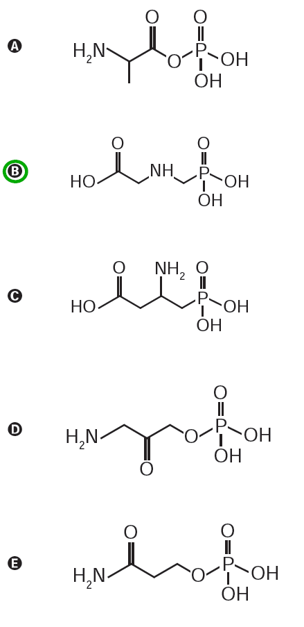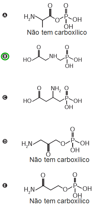 “Esse composto possui os grupos funcionais carboxilato, amino e fosfonato.”