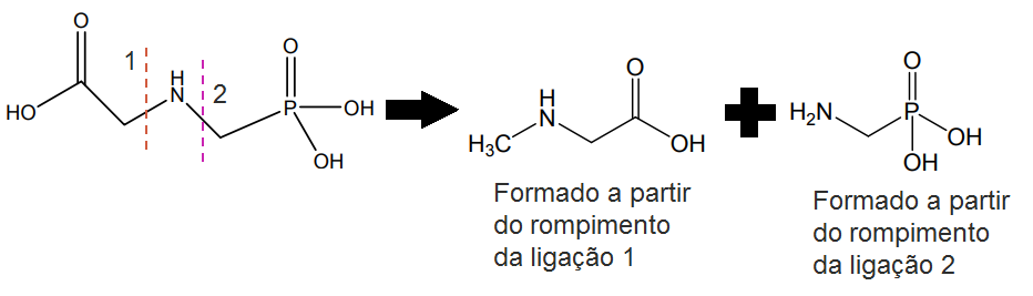 O glifosato (C3H8NO5P) é um herbicida pertencente ao grupo químico das glicinas, classificado como não seletivo. Esse composto possui os grupos funcionais carboxilato, amino e fosfonato. A degradação do glifosato no solo é muito rápida e realizada por grande variedade de microrganismos, que usam o produto como fonte de energia e fósforo. Os produtos da degradação são o ácido aminometilfosfônico (AMPA) e o N– metilglicina (sarcosina):