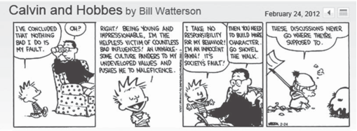 A partir da leitura dessa tirinha, infere-se que o discurso de Calvin teve um efeito diferente do pretendido, uma vez que ele