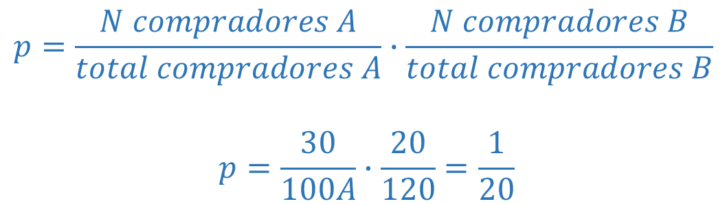 A loja sorteará um brinde entre os compradores do produto A e outro brinde entre os compradores do produto B.