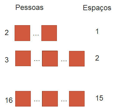 Entre as 16 pessoas teremos 15 espaços, então o comprimento de onda será: