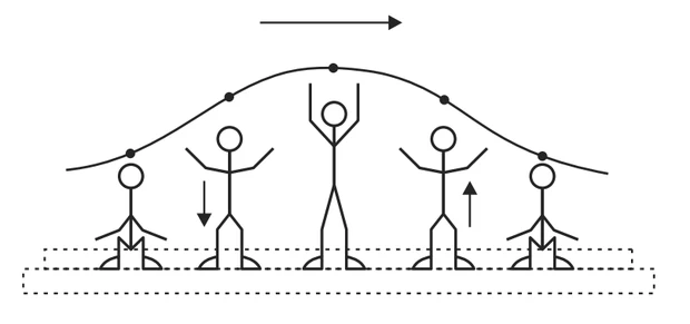Uma manifestação comum das torcidas em estádios de futebol é a ola mexicana. Os espectadores de uma linha, sem sair do lugar e sem se deslocarem lateralmente, ficam de pé e se sentam, sincronizados com os da linha adjacente. O efeito coletivo se propaga pelos espectadores do estádio, formando uma onda progressiva, conforme ilustração.