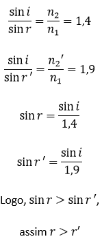 Em uma fiscalização rotineira, o teste apresentou o valor de 1,9. Qual foi o comportamento do raio refratado?