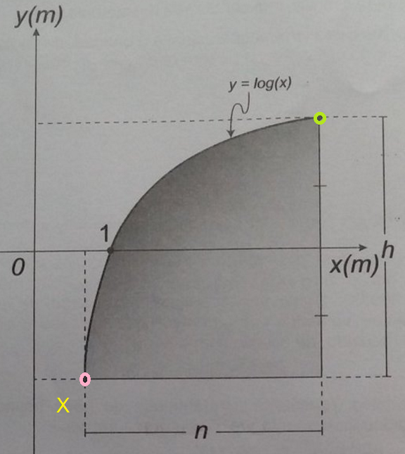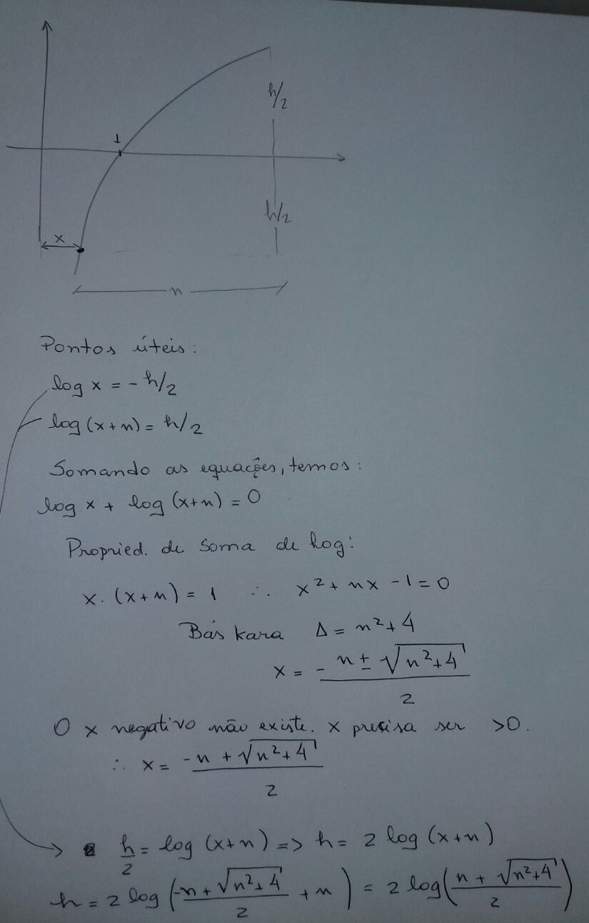 Agora, tomemos os pontos do gráfico que vão nos ajudar a resolver a questão. Queremos ter uma relação entre h e n (como a questão pede). Para isso, vamos estabelecer um ponto de abscissa x (rosa), no gráfico, e um ponto de abscissa x+n (verde).