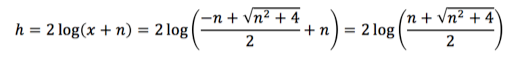 A forma do vidro foi concebida de modo que o eixo x sempre divida ao meio a altura h do vidro e a bsas do vidro seja paralela ao eixo x. Obedecendo a essas condições, o engenheiro determineou uma expressão que fornece a altura h do vidro em função da medida n de sua base, em metros.