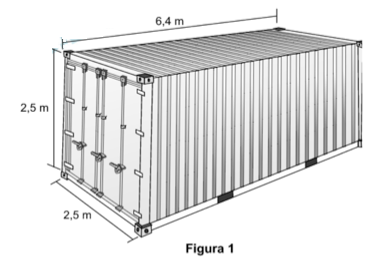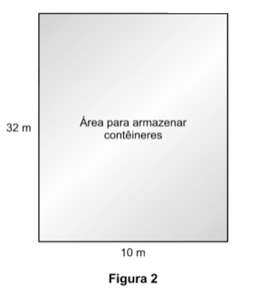 Uma carga de 100 contêineres, idênticos ao modelo apresentado na Figura 1, deverá ser descarregada no porto de uma cidade. Para isso, uma área retangular de 10m por 32 m foi cedida para o empilhamento desses contêineres (Figura 2).