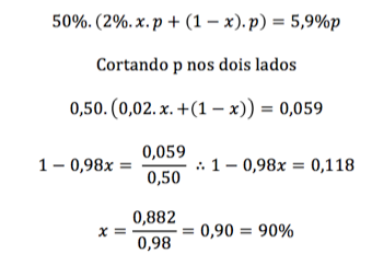 metade das pessoas não vacinadas + metade das pessoas cuja vacina foi ineficaz = 5,9% da população50%.2%x.p + 50%.(1-x).p = 5,9%p