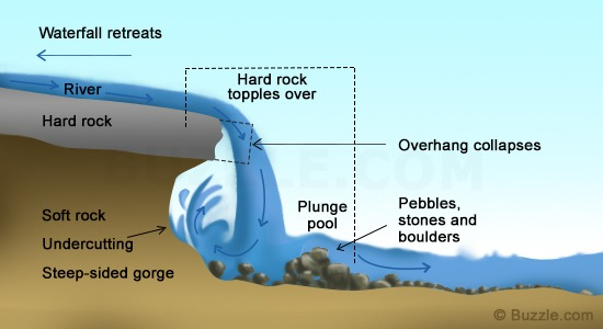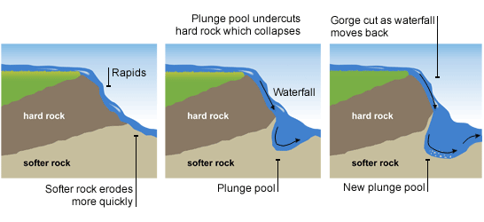 1 – Cachoeiras – causadas pela erosão nas rochas mais macias (menor dureza) devido ao fluxo do rio.