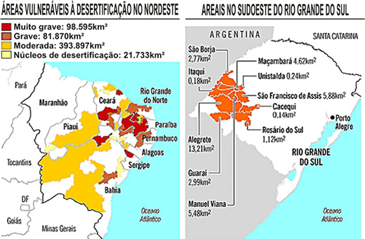 a) desertificação das áreas afetadas.