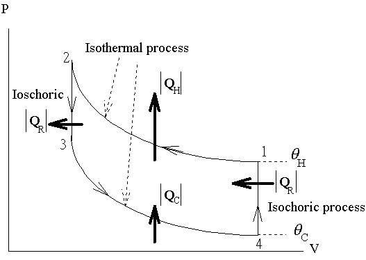 Veja o diagrama abaixo, em que a diminuição da temperatura em volume constante implica na redução da pressão, este é o processo isocórico 3.