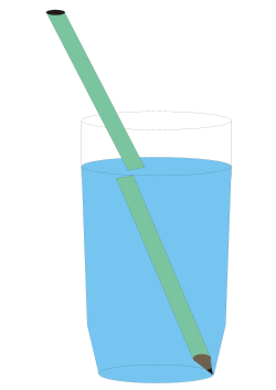 Exemplo da refração da imagem de um lápis ao ser submerso num copo de água.