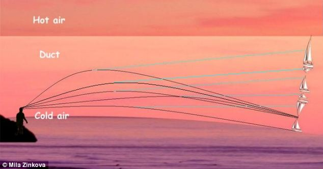 O fenômeno ótico que, segundo os pesquisadores, provoca a Fata Morgana é a