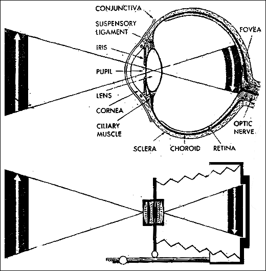 A questão estabelece uma analogia entre a câmera escura e o olho humano, em que o tecido seria a retina.