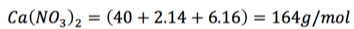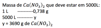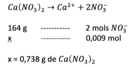 Cálculo da massa de nitrato de cálcio necessária para obter 0,009 mol de íons nitrato em 1 L do tanque: