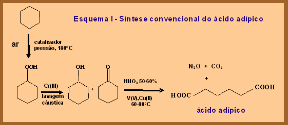 Achamos que o enunciado foi incompleto, então pesquisamos melhor a síntese do ácido adípico. Veja esta publicação do Conselho Regional de Química.
