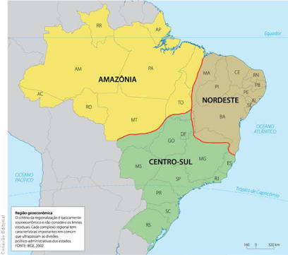A divisão em regiões geoeconômicas ou complexos regionais encontra-se na seguinte representação: