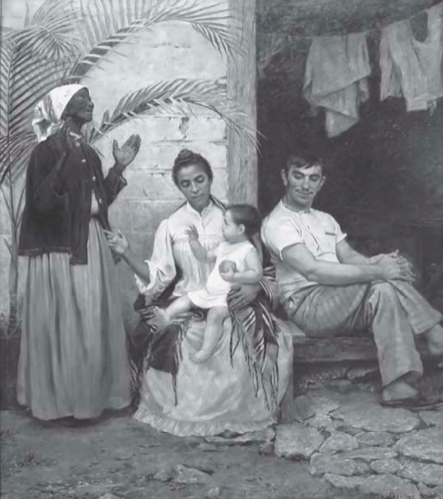 Na imagem, o autor procura representar as diferentes gerações de uma família associada a uma noção consagrada pelas elites intelectuais da época, que era a de