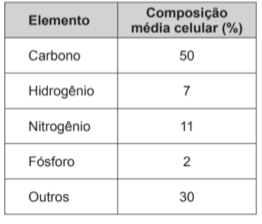 O petróleo é um tipo de combustível fóssil, de origem animal e vegetal, constituído principalmente por hidrocarbonetos. Em desastres de derramamento de petróleo, vários métodos são usados para a limpeza das áreas afetadas. Um deles é a biodegradação por populações naturais de microrganismos que utilizam o petróleo como fonte de nutrientes. O quadro mostra a composição química média das células desses microrganismos.