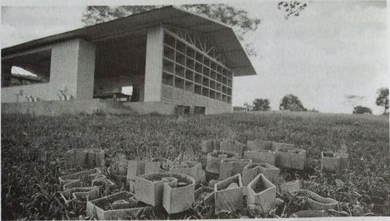 O observador realmente participa escolhendo palavras e sentenças e distribuindo-as pelo campo através dos vasos.