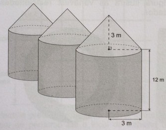 O volume do silo pode ser calculada por Vcilindro + Vcone.