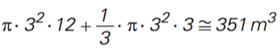 A questão nos pede o volume dos dois, ou seja, precisamos somar o volume do cone com o do cilindro. Assim, chegamos em: