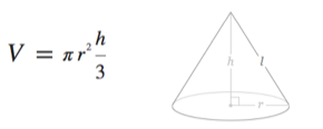 Volume do cone é calculado multiplicando a base por 1/3 da altura, da seguinte forma: